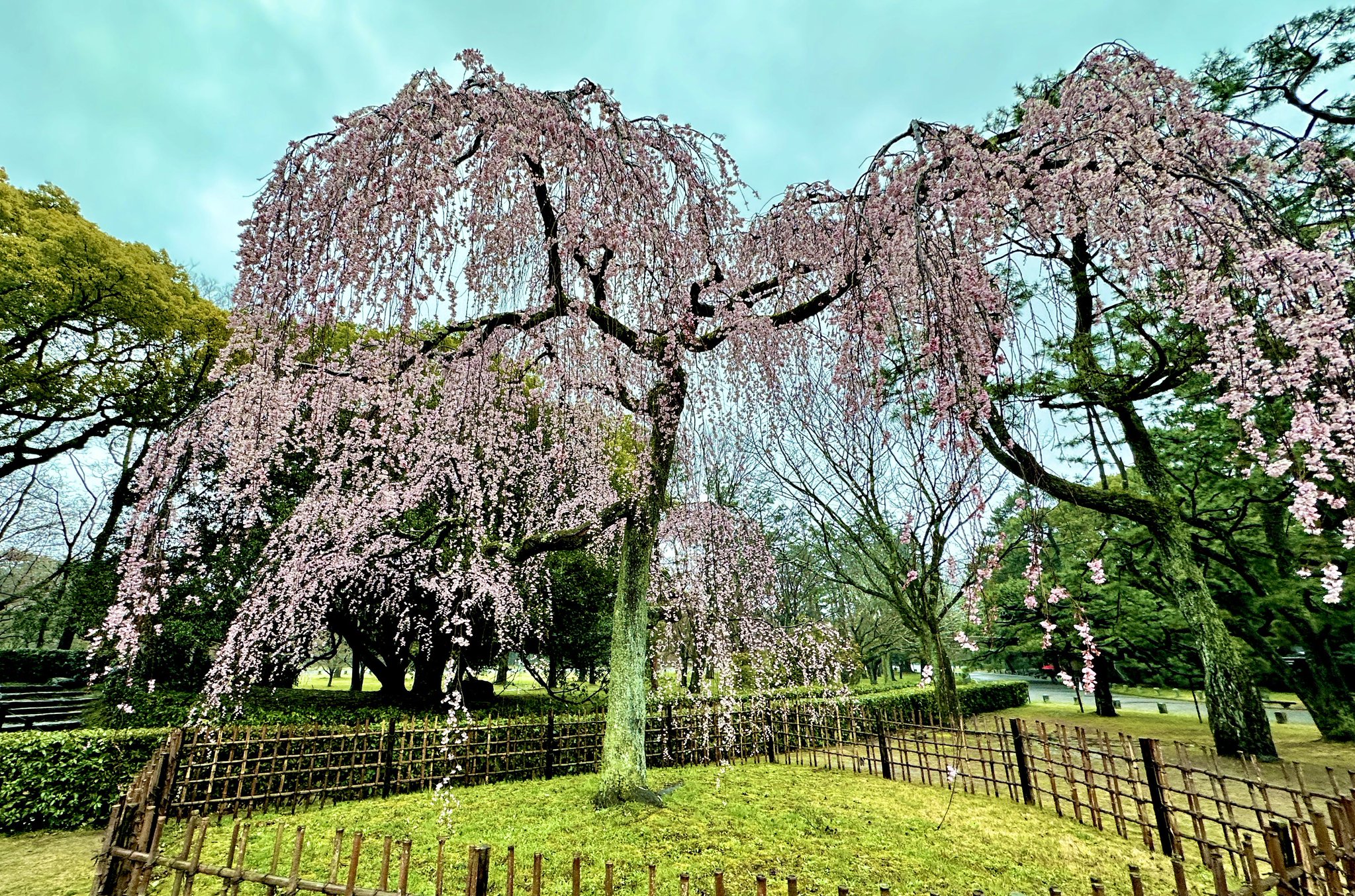고쇼의 수양벚나무는 거의 만개했다.