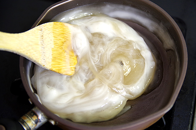 와라비 모찌의 재료가 완성.