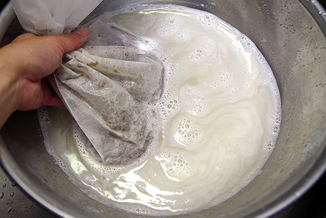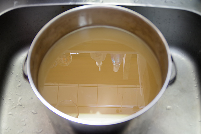 몇 번을 반복하면 고운 전분만 바닥에 가라앉음.