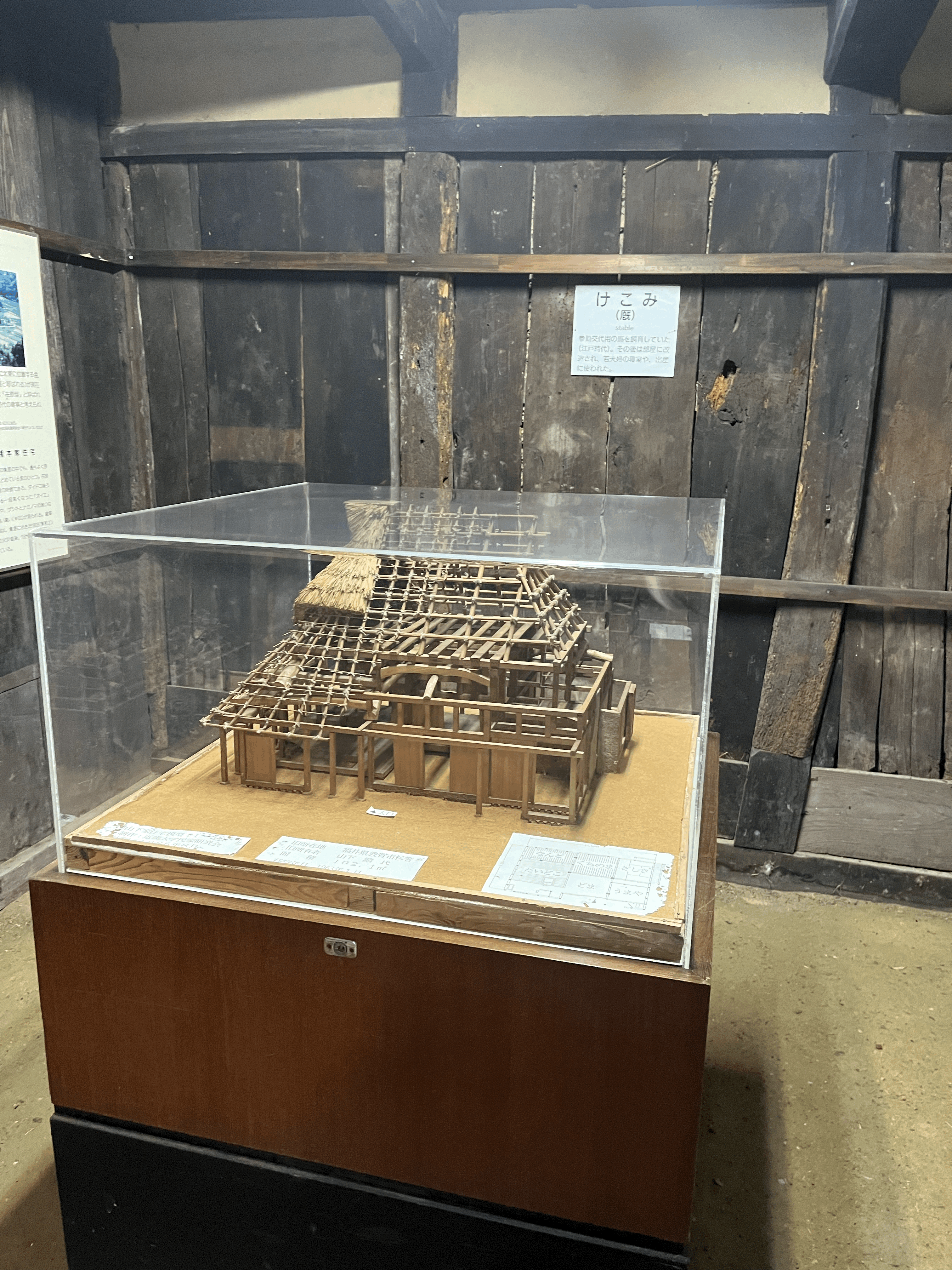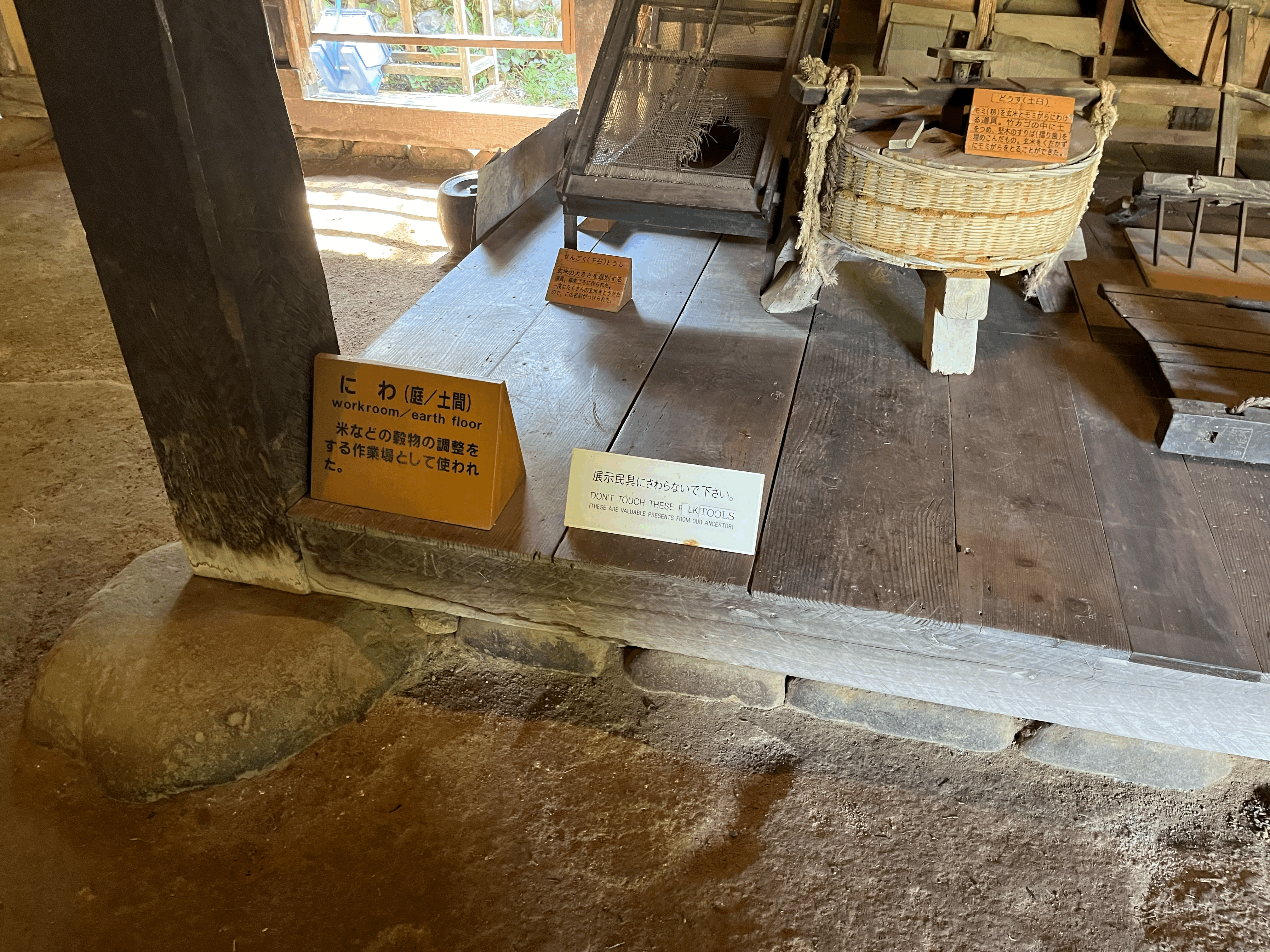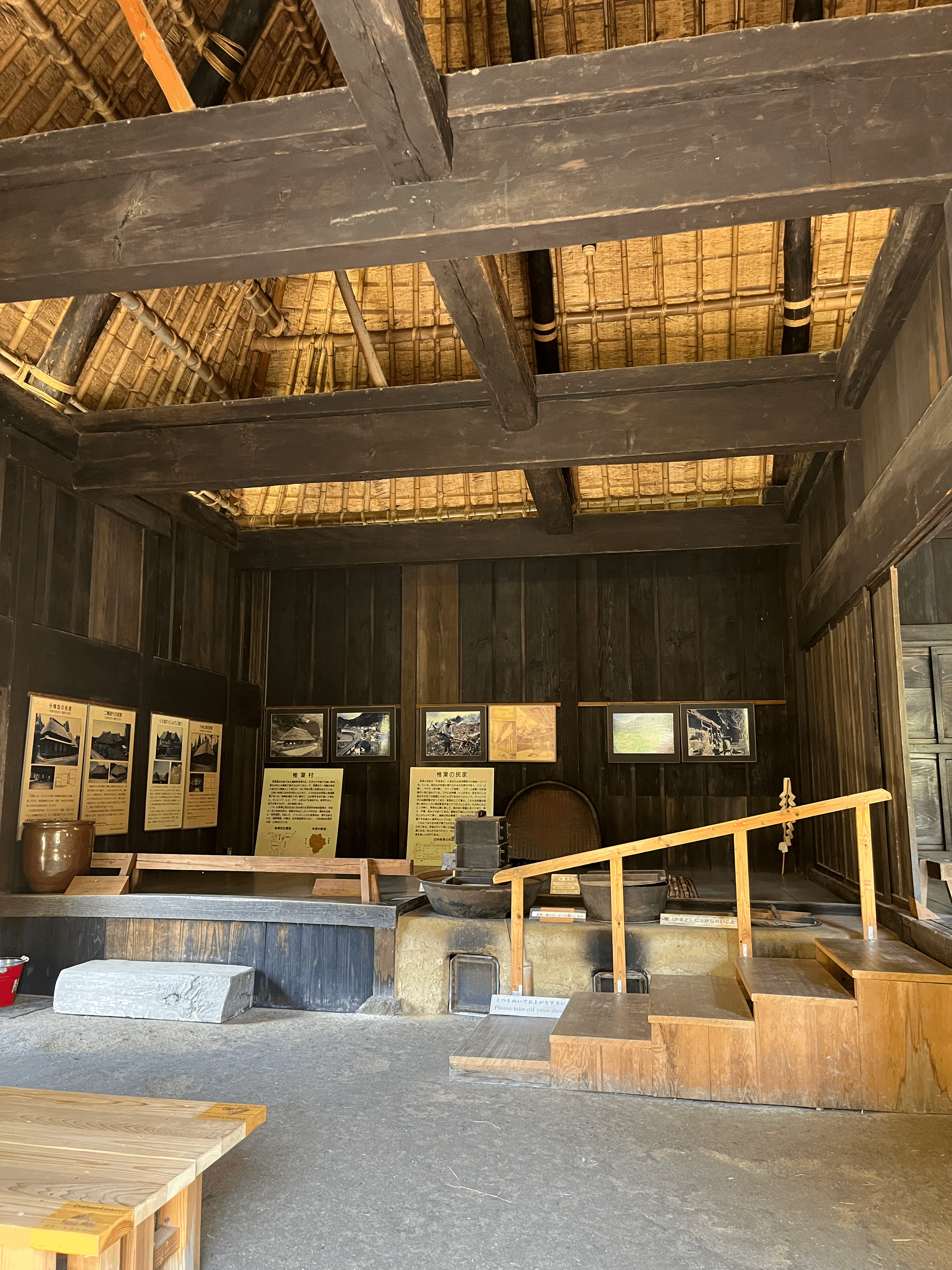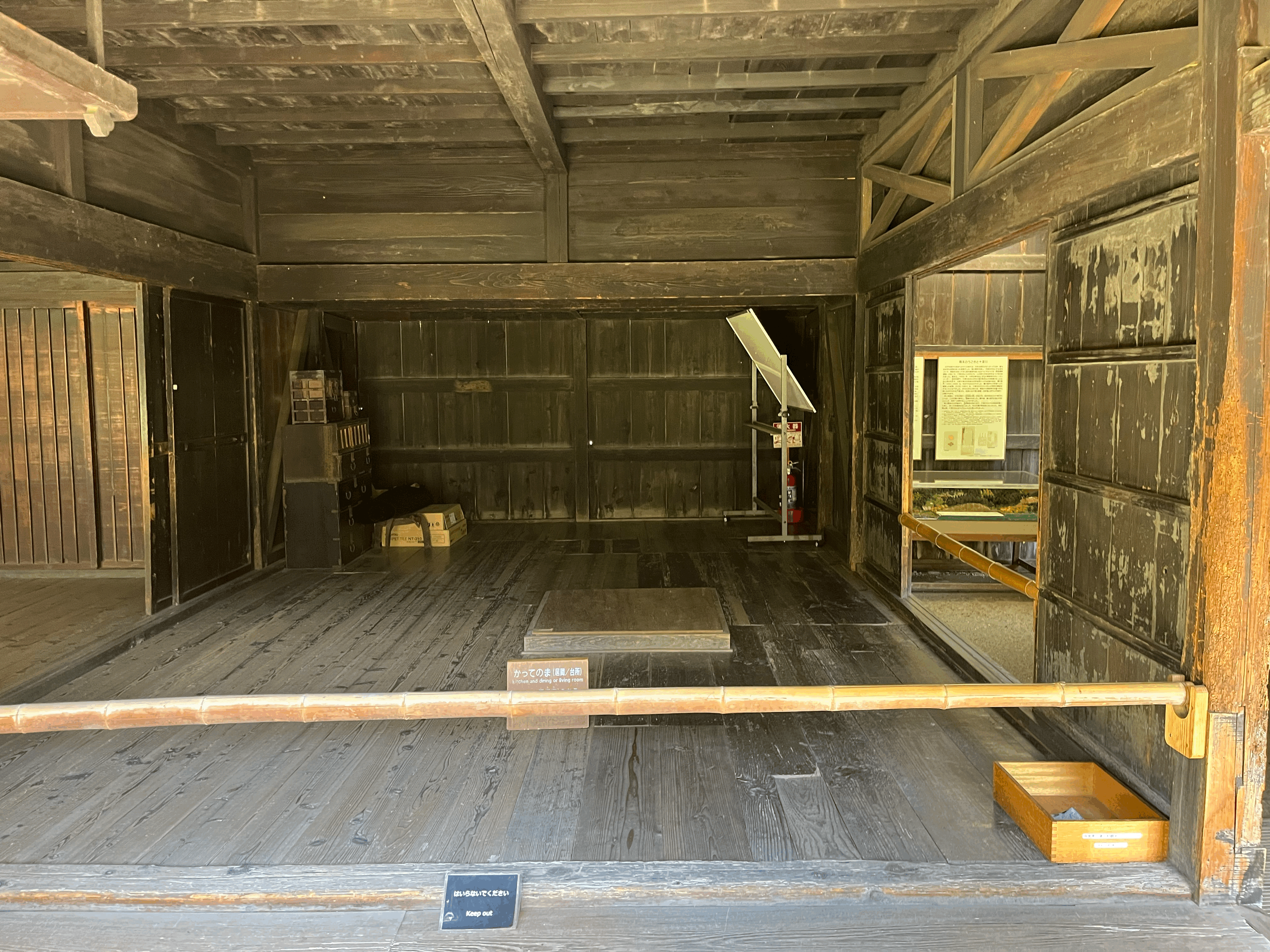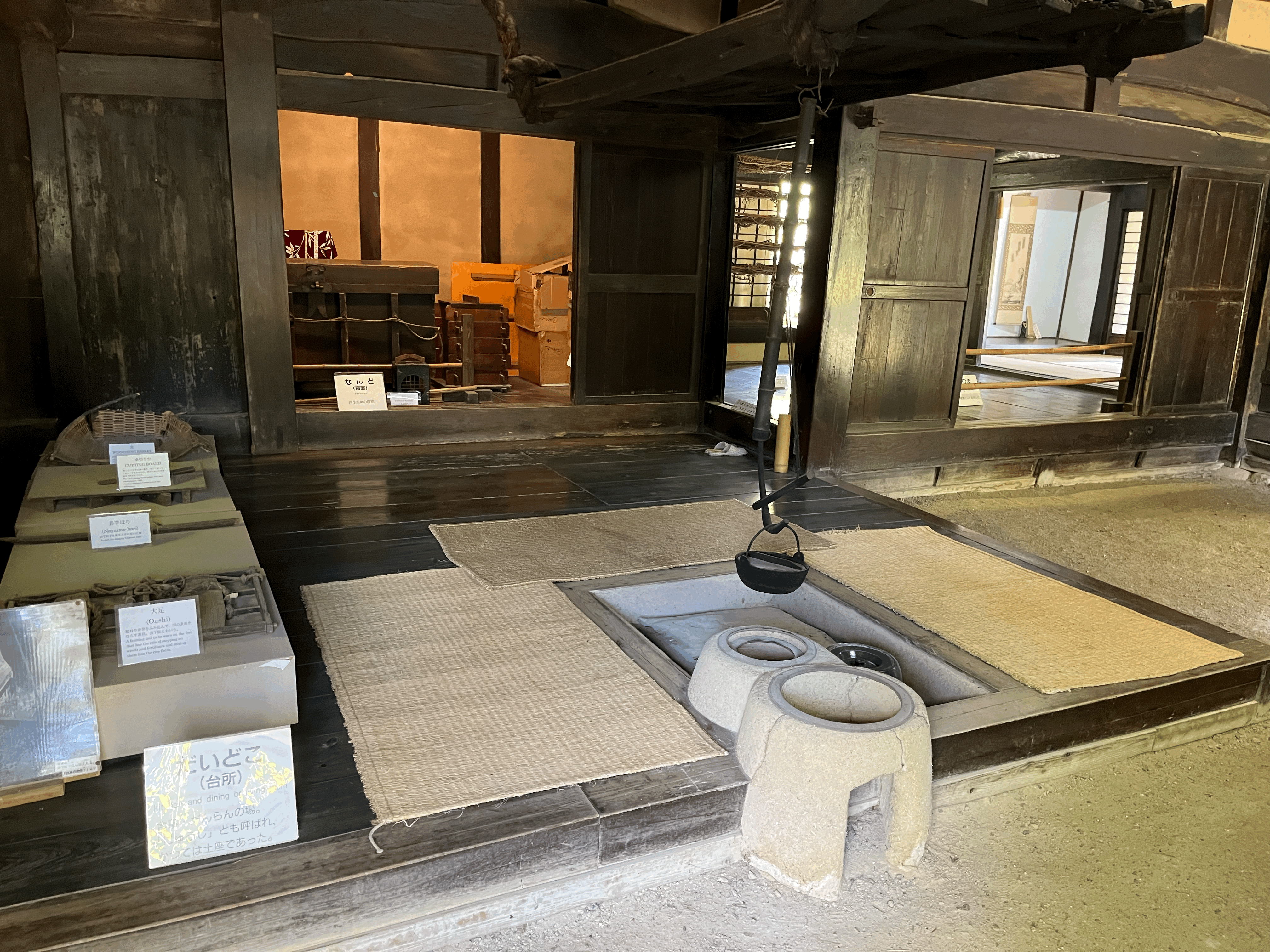 한국의 가옥은 집 안과 밖의 경계가 명확하게 나뉘는데, 일본은 집 안에 들어가도 집 밖인 것 같은 착각을 하게 하는 구조가 많다. 역시나 산간의 추운 지역은 그런 걸까? 부엌과 그 뒤의 자는 방, 그리고 옆의 손님맞이 방이 있는데 바닥은 신발 신고 돌아다니는 밖과 같은 모습이다.