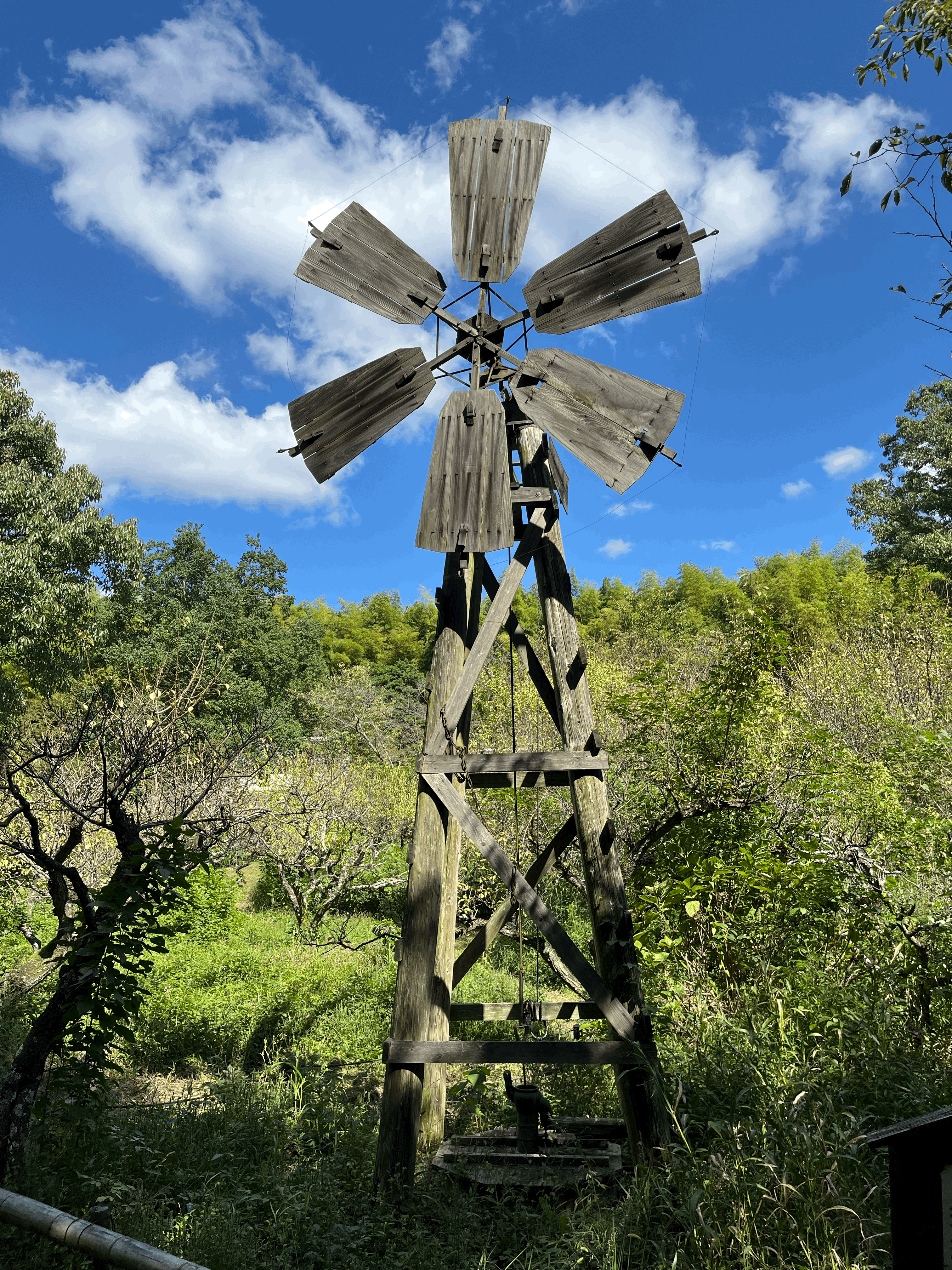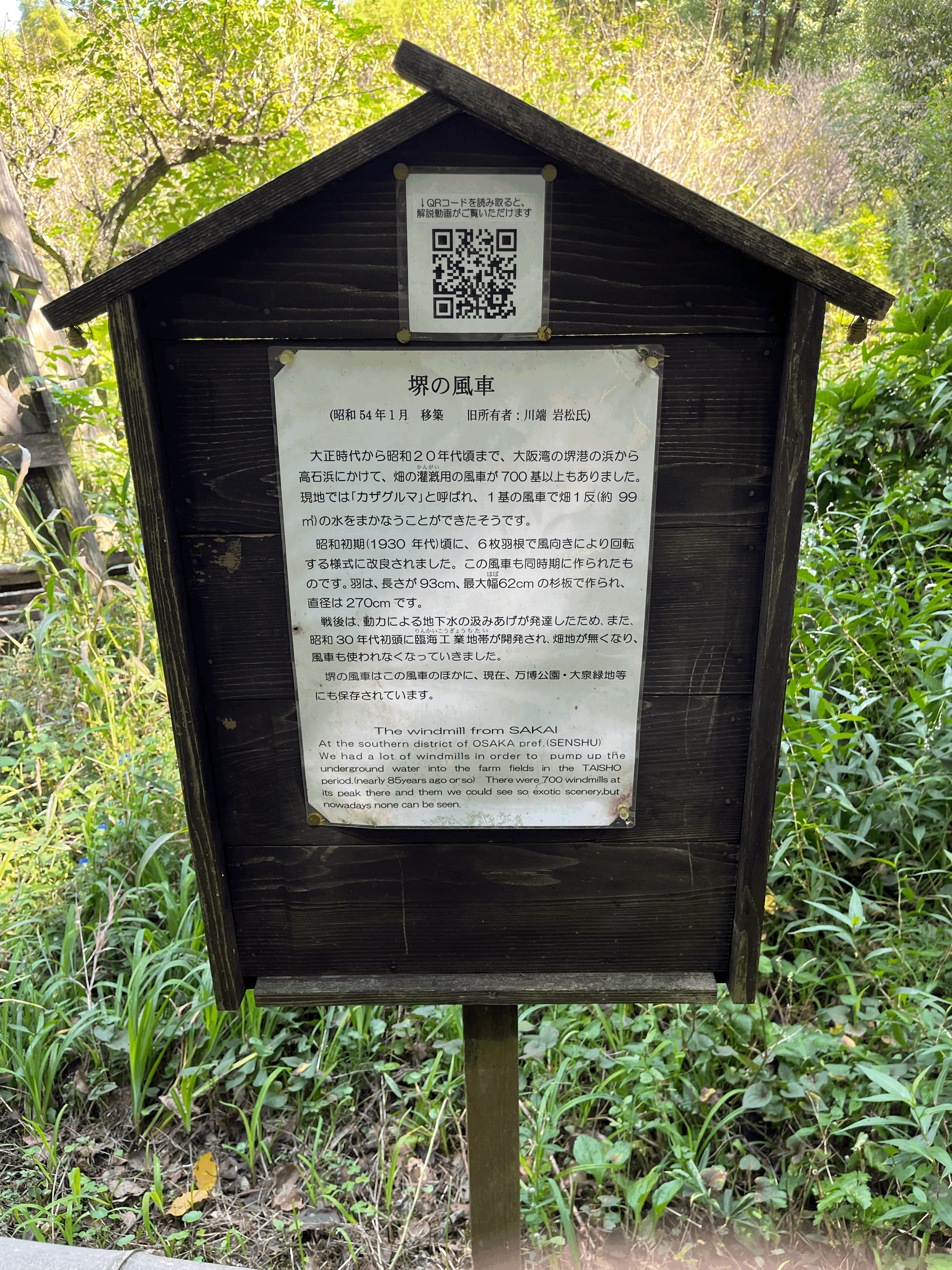 지나는 길에 설치되어 있는 풍차. 항구로 유명했던 사카이시에서 관개용으로 사용하던 것이라 한다.