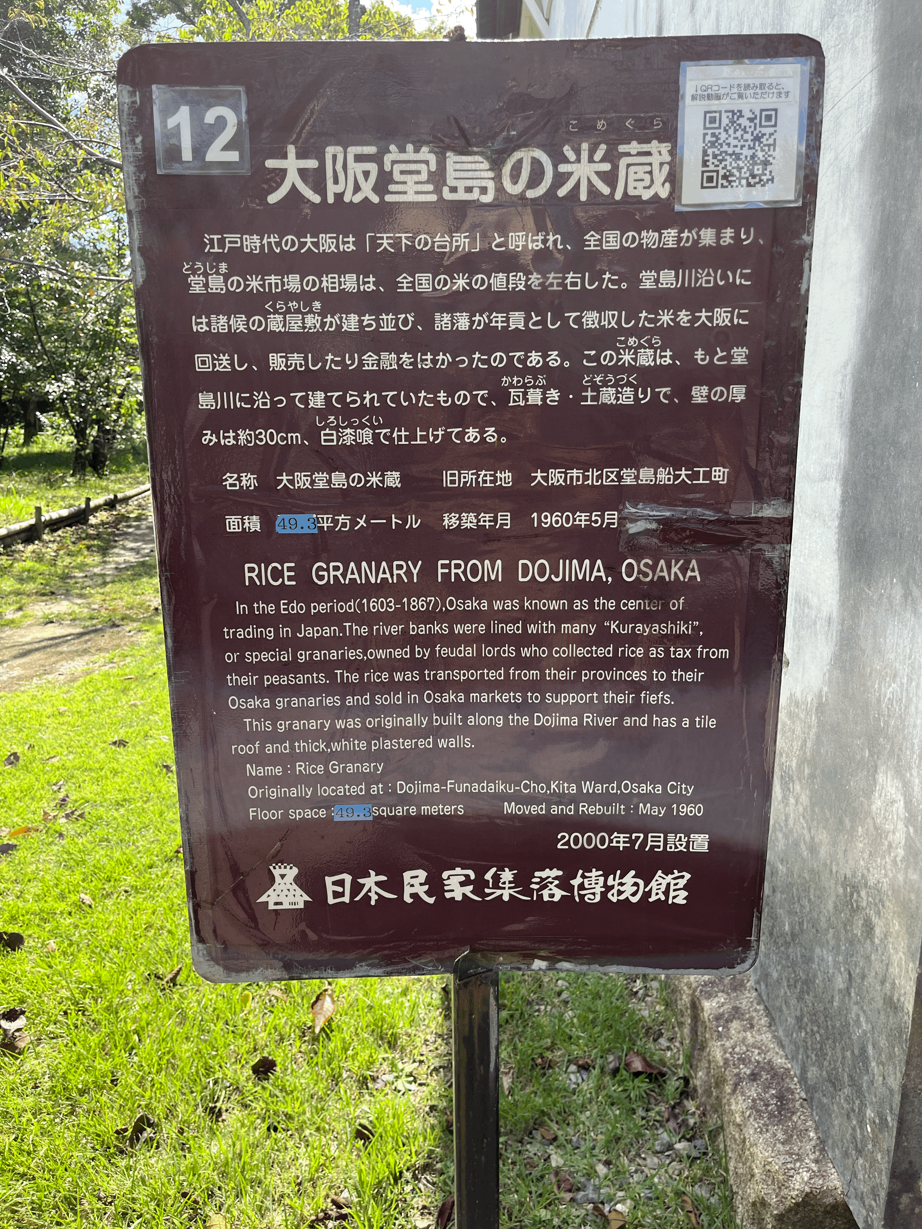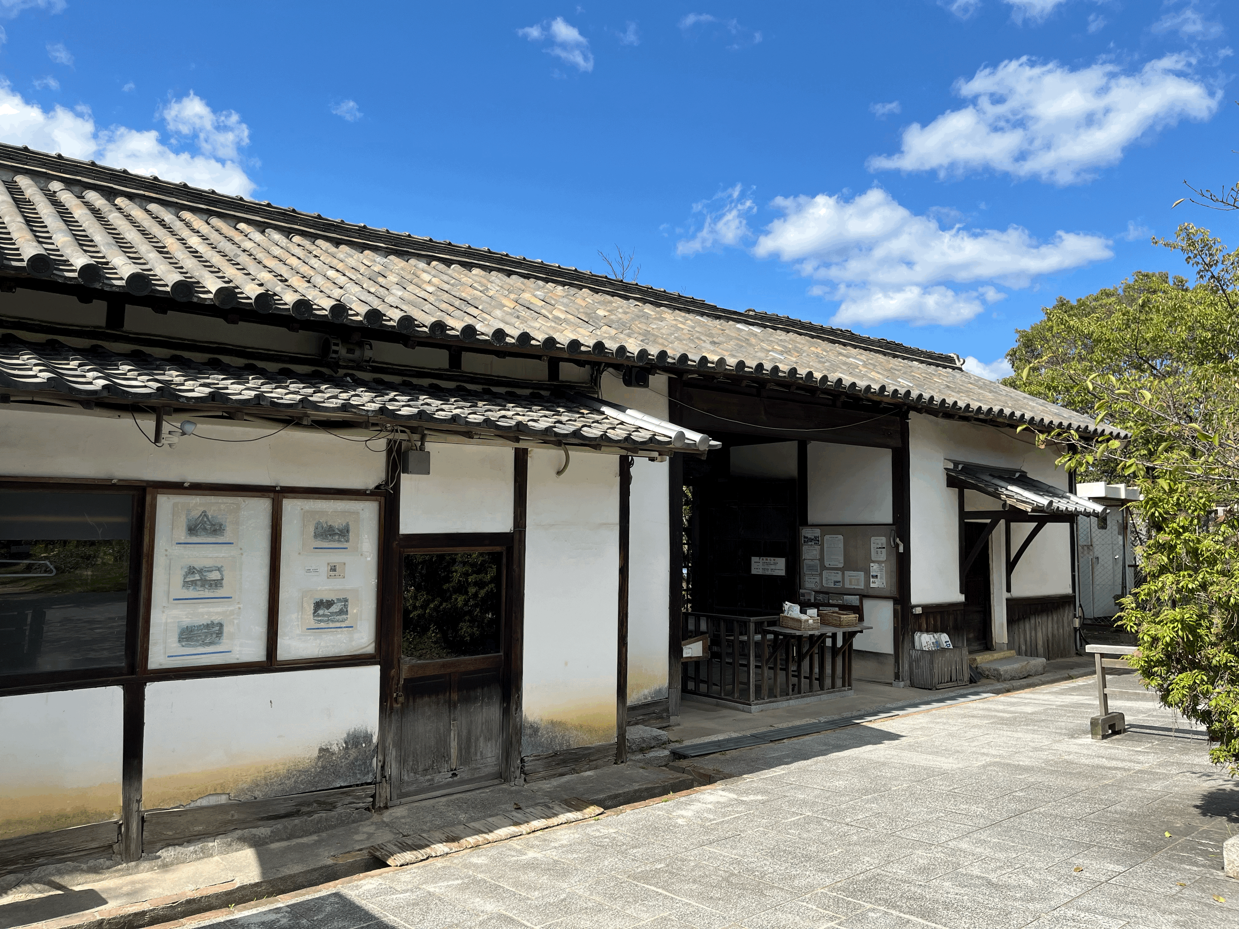 일본 건물답지 않게 기와를 올린 것이 특징. 이름은 가와치후세의 나가야몬河内布施の長屋門. 가와치 후세라는 지역에 있던 공동주택의 문이란 뜻이겠다. 사진에 보이는 왼쪽이 주택으로 쓰던 공간이고, 오른쪽이 창고로 쓰던 곳이라고.