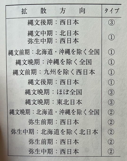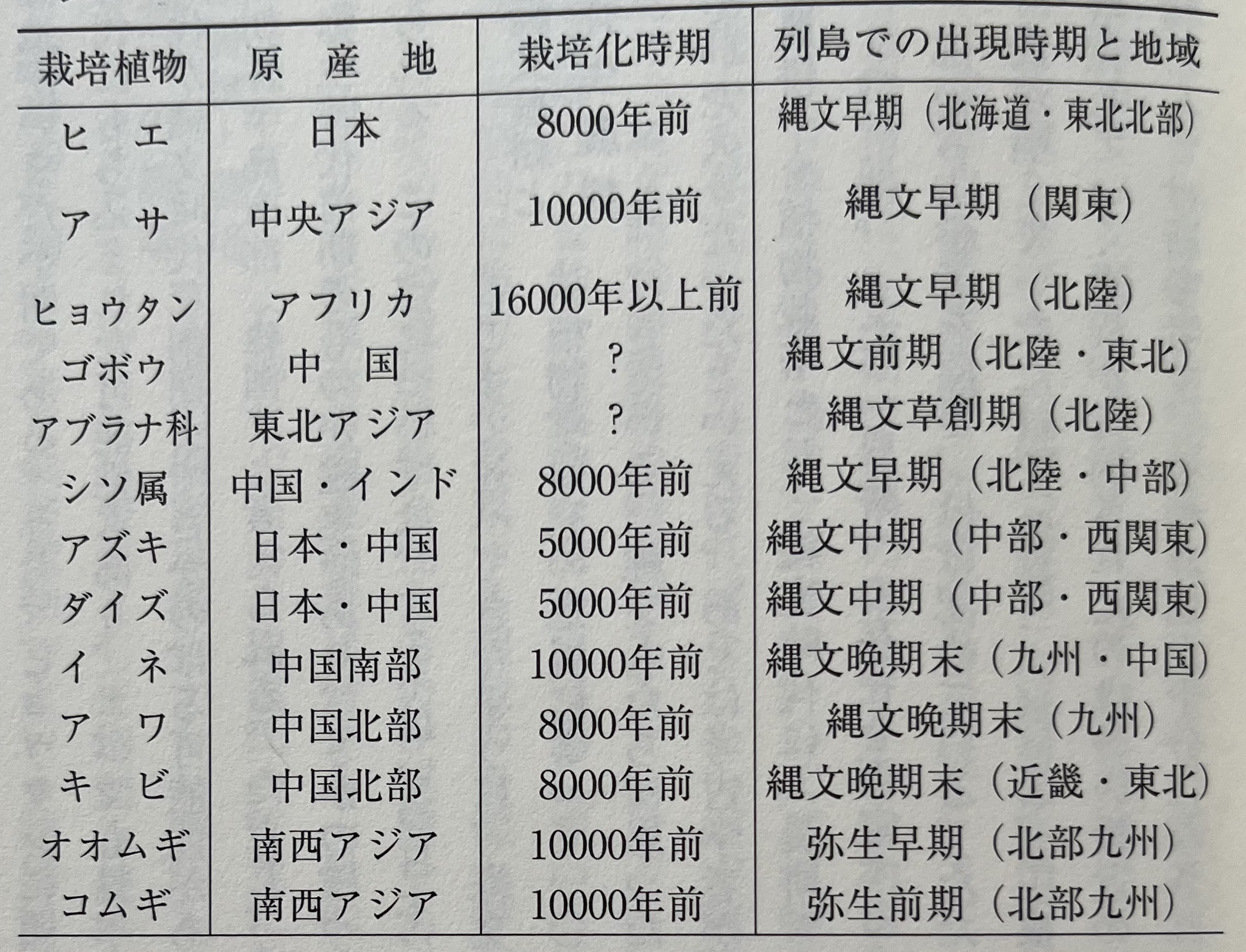 이상 보았듯이, 아직 의문의 여지는 있지만 죠몬 시대의 재배 식물은 그 출현 시기와 기원지로부터 아래의 크게 3가지 타입으로 분류할 수 있다(표2).