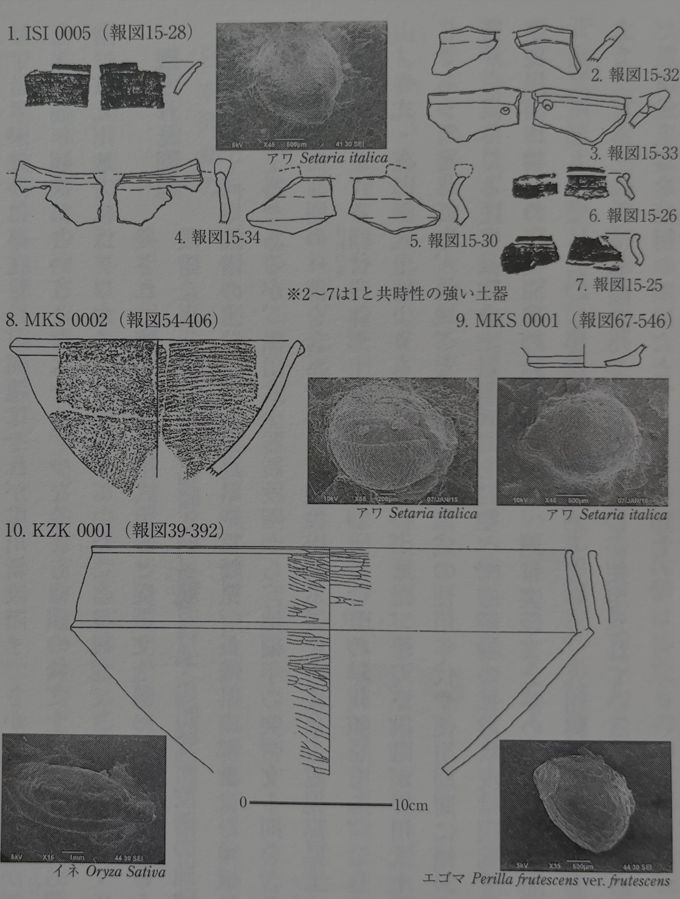 이상의 상황으로부터 보아, 현재로서는 이 단계에서는 대륙계 곡물 압흔으로 확실한 것은 검출되지 않고, 동일본에서 전파된 팥, 대두, 들깨를 중심으로 한 밭작물이 재배되던 단계라고 할 수 있을 듯하다.