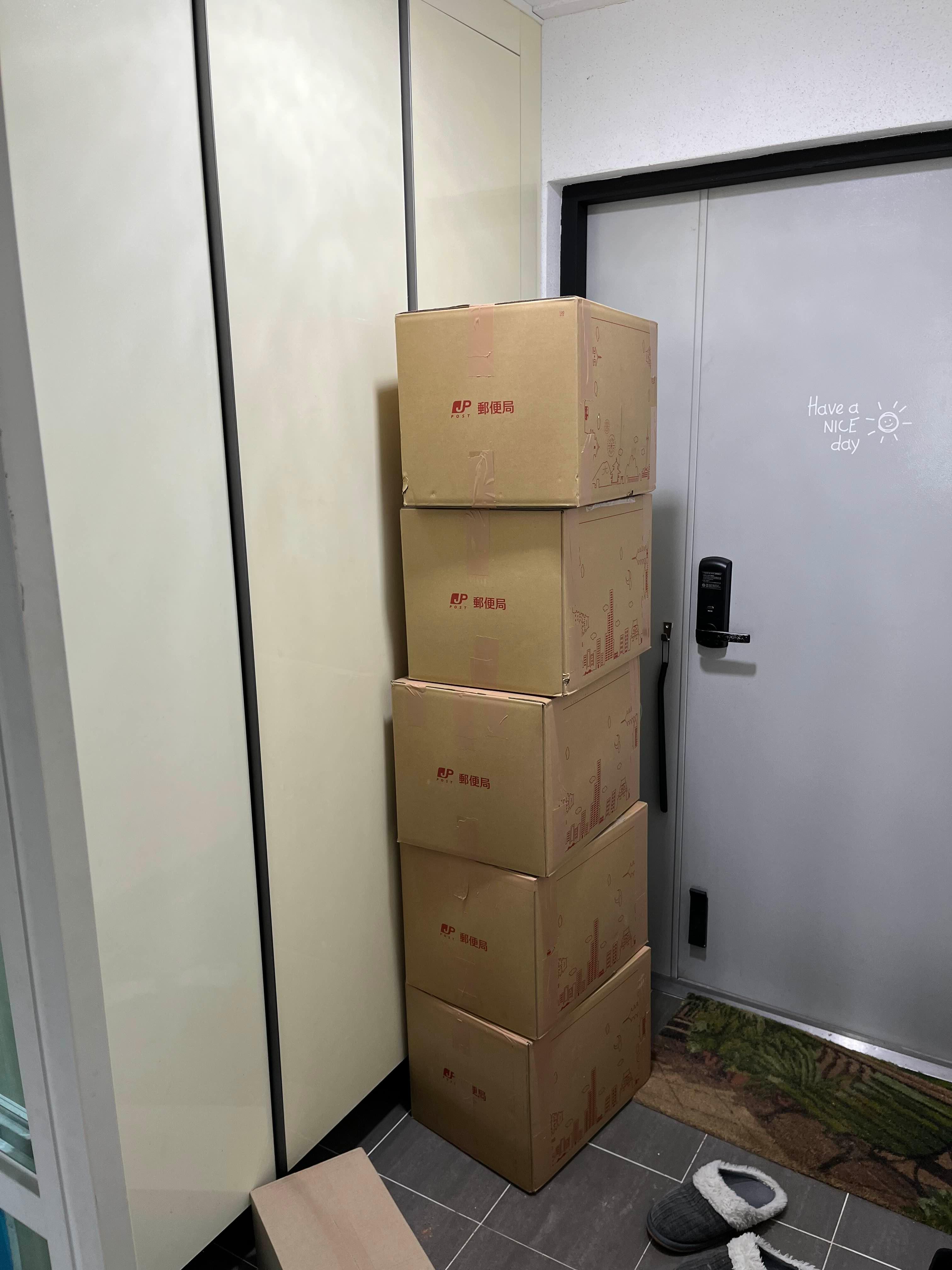 일본에서 배편으로 12월 11일에 발송한 이삿짐이 오늘 드디어 도착!