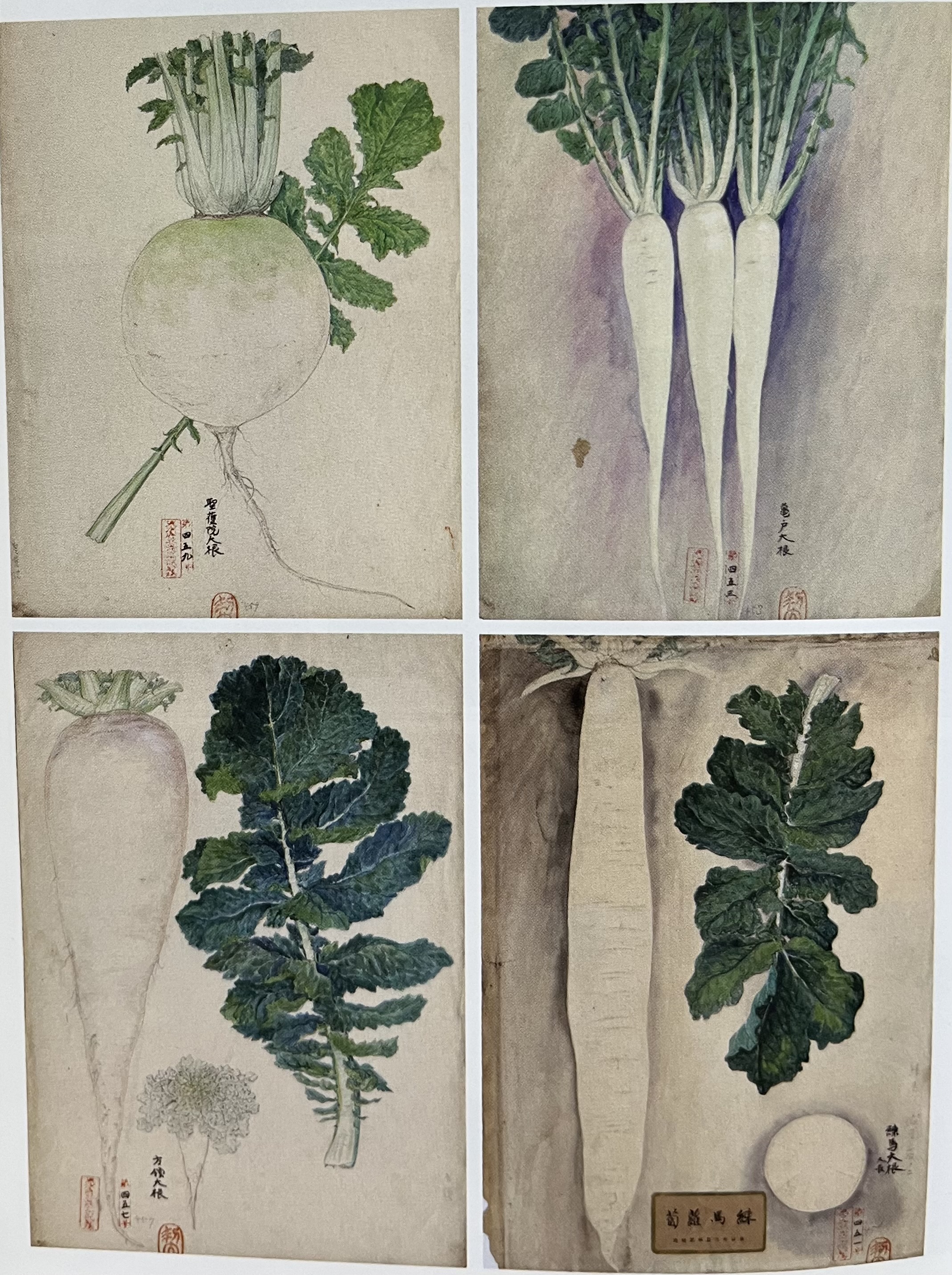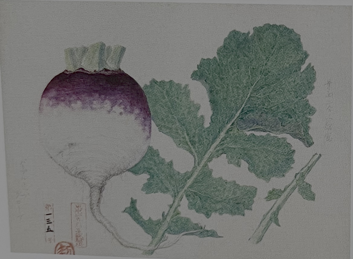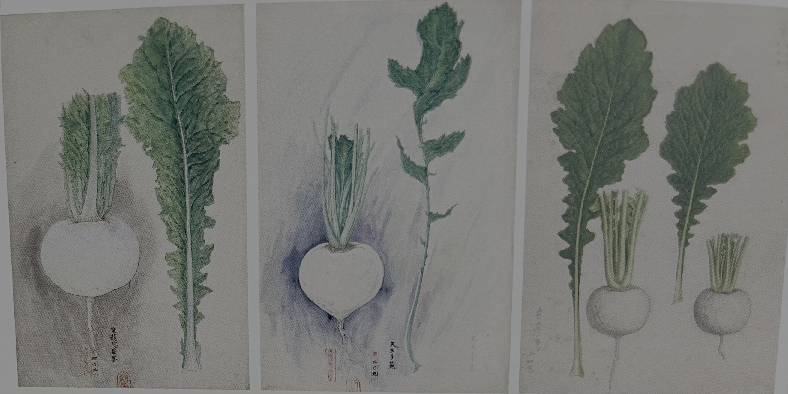 이 채소 세밀화는 교토도 농림종합연구센터(옛 도쿄부 농사시험장)가 소장한 수채화의 회화 자료이다. 제작 과정 등의 구체적인 경위는 알 수 없으나, 1916년부터 1953년 무렵에 시험장이 화가에게 의뢰하여 기재시킨 것이라 생각된다.