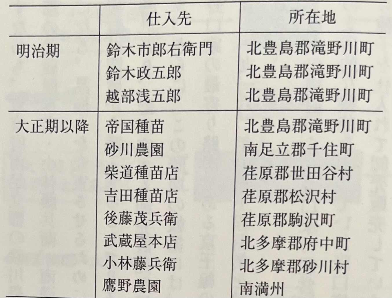 표4-10 메이지·다이쇼우 시기 타치바나야 종묘점의 판매용 종자 매입처