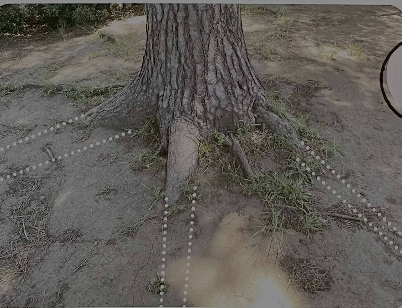 나무의 줄기로부터 뿌리의 퍼짐을 상상해 보죠. 나무를 올려다볼 때 수관의 끝을 확인하면, 뿌리가 대략 어디까지 퍼져 있을지 알 수 있습니다.