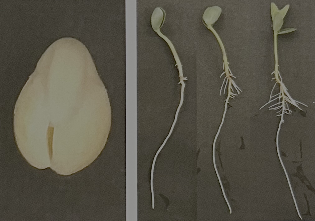 뿌리는 씨앗에서 어떻게 뻗는 걸까? 콩 씨앗을 반으로 잘라 보면, 안에는 뿌리의 아기가 있습니다. 이건 어린뿌리라 부르는 부분입니다. 씨앗이 물을 빨아들이면 어린뿌리가 뻗어 원뿌리가 됩니다. 며칠 지나면 원뿌리에서 새로운 뿌리(곁뿌리)가 나옵니다.